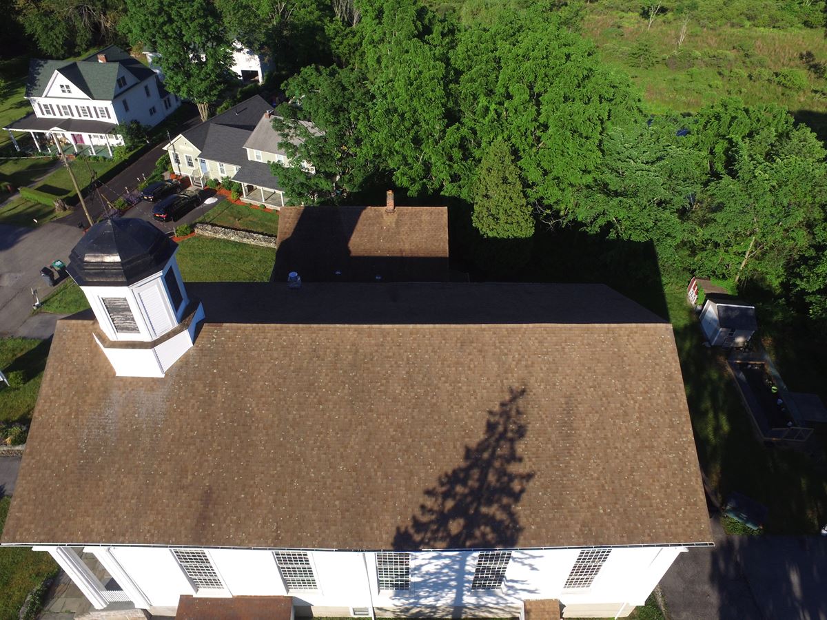 On this project, the customer decided the roof was old and needed to be replaced. As seen in the pictures, there was a visible coverage of algae on the roof. It was important to replace the roof as it gets older in older to prevent damage to other parts of the house, and to protect the contents inside. We removed all the shingles and replaced most of the plywood. Aluminum drip edges, ice and water shield was installed on the lower eaves at least two feet inside the warm wall of the building. It is important to install Ice and Water Shield to provide extra protection against wind driven rain and ice dams. GAF Timberline HD Shingle in Mission brown was used for this project. On each shingle, 6 galvanized roofing nails were used to ensure that they would stay in place. New pipe boot flashing was installed on all vent pipes and ridge vent was installed at the peaks to meet the full manufacturer’s warranty requirements for exhaust venting. Once finished, the job site was swept and scanned for nails with a magnet, then inspected. The project took 3 days total to finish.