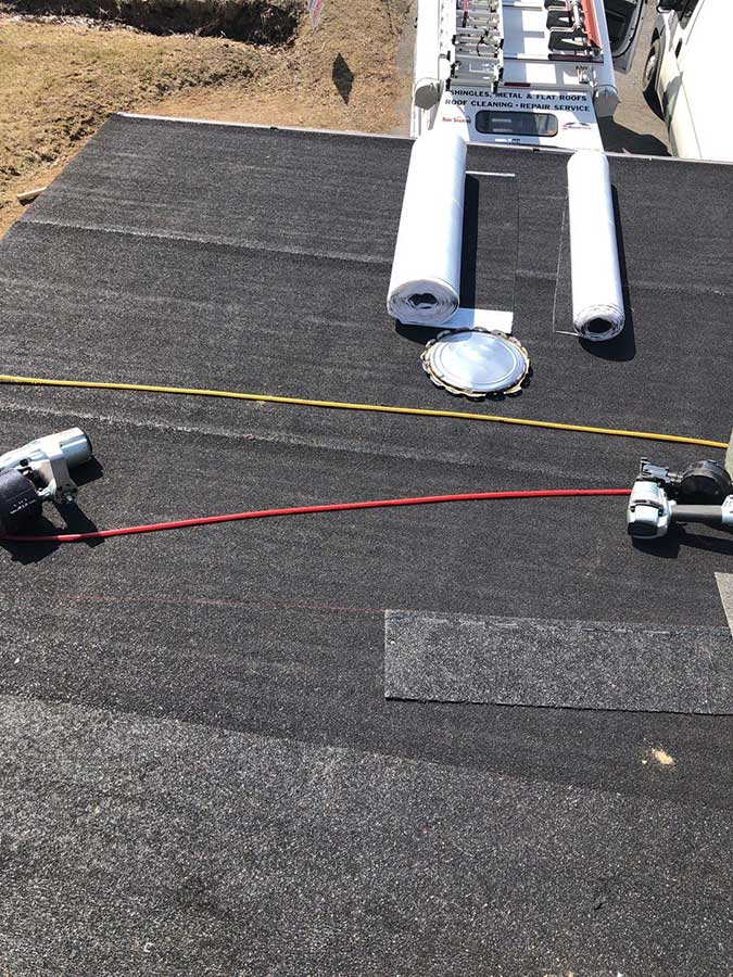 The homeowner called Serrano II Inc to replace the roof and ensure that it was water-tight. Rather than install new shingles on top of the old ones, we first went onto the roof and removed all old shingles. In doing so, we were able to determine how much plywood needed replacing. As you can see in some of the pictures, there were two specific spots that we removed plywood. The wood was severely deteriorated near the front of the home. All wood and debris were removed, and plywood was replaced where necessary. Next, instead of installing shingles on the porch roof, we installed GAF Liberty low slope Roofing System. It is essential to install the right product on low-sloped roofs since water can often get below shingles and travel far enough to cause damage. GAF Liberty is a three-ply self-adhering modified roof system that is specifically designed for these types of installations. We installed GAF American Harvest Shingles in the Appalachian Sky Color. GAF American Harvest Shingles come with GAF StainGuard Plus to add algae prevention and LayerLock Technology to add improved protection against wind blow-off. StainGuard Plus uses specially engineered capsules that release copper overtime fighting algae stains. Together, these technologies can help protect to keep your roof in tact for 25 years. Once finished, the site was cleared of nails and debris, and the entire job site was cleaned. It took about two days to complete the roof installation.