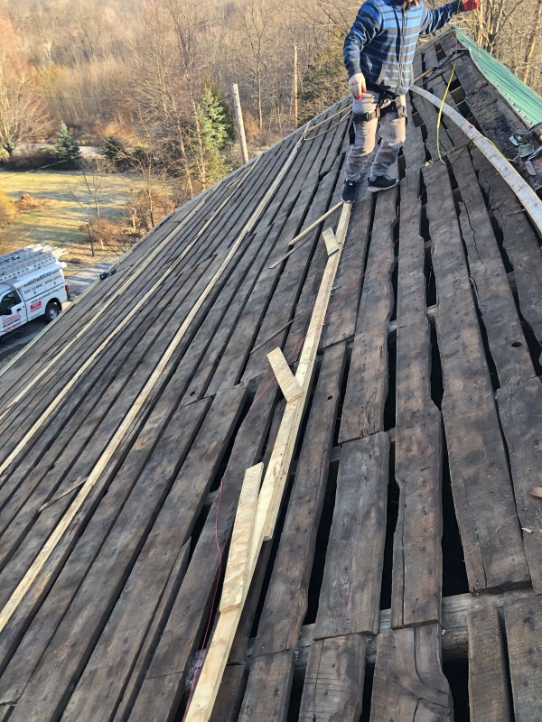 We assisted the homeowner to streamline the insurance claim process, so they could quickly come to a conclusion with the insurance adjuster and not delay the process to prevent subsequent damage to the structure and it’s contents. We removed entire existing roof as was not installed properly, installed new plywood sheathing over the original wide deck boards, then installed a rib panel roof system. If you are interested in getting a metal roof replacement for you home then give us a call at 845-692-2226.