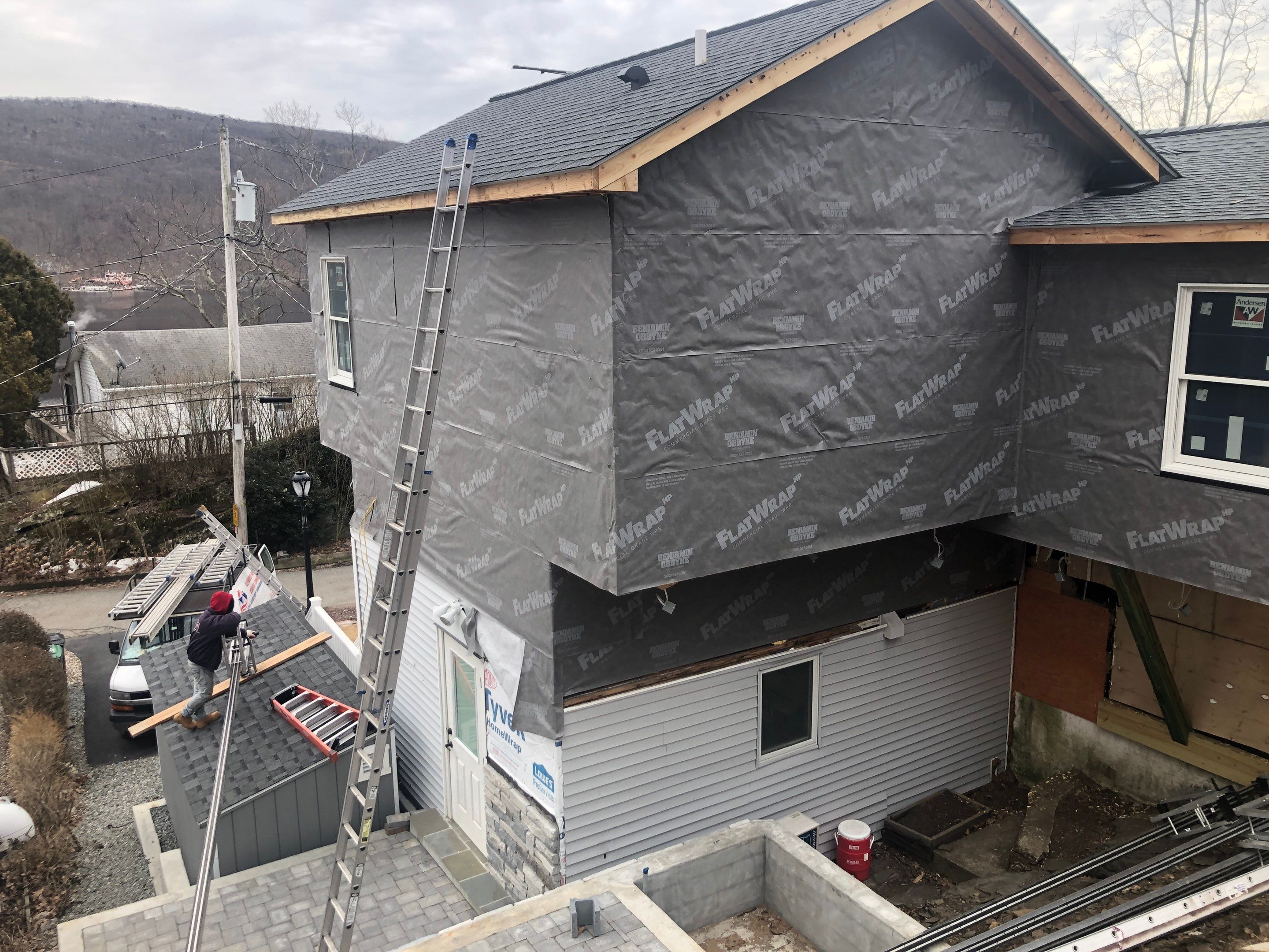 The homeowner was having work done on the home. They needed to have the siding installed which we were contacted for. Siding is important to the home because it acts as the first layer of defense against the elements. Especially during the winter, siding will help insulate the home from wind and reduce leakage of heat. Before installing the siding, we needed to first add house wrap throughout the outside of the home. While siding does a lot to help prevent the elements from entering the home, it isn’t perfect. House wrap acts as a second layer of protection. It’s able to dampen wind and prevent water from entering the home. House wrap also helps provide additional insulation to the home during the winter, keeping the heat inside. Flashing tape was used around windows and penetrations. It’s able to create a seal between the house wrap and these potential openings from the elements. Once the home was wrapped, siding was installed to finalize the project. In addition to protecting the home, siding can also allow the homeowner to choose the look of the home. There are a wide variety of materials that add to the customization possibilities. Metal, wood, and vinyl are among the materials available for siding. Wood can give a more of a rustic look. When using vinyl, you can decide how you want the outside of the home to look with a wide variety of colors and textures. If you want, you can even find vinyl siding with a wood shake texture in any color you’d like. In addition, vinyl siding will be resistant to mold and mildew, especially in more humid locations compared to wood siding. Although it may be more expensive, metal siding provides protections that wood and vinyl cannot. Metal siding is especially damage resistant since it’ll last better against hail or airborne debris. Also, in areas where it’s a concern, you can find metal siding that is fire resistant. Also, if necessary, metal siding is easily recyclable compared to other materials. The project took about 4 days to complete.